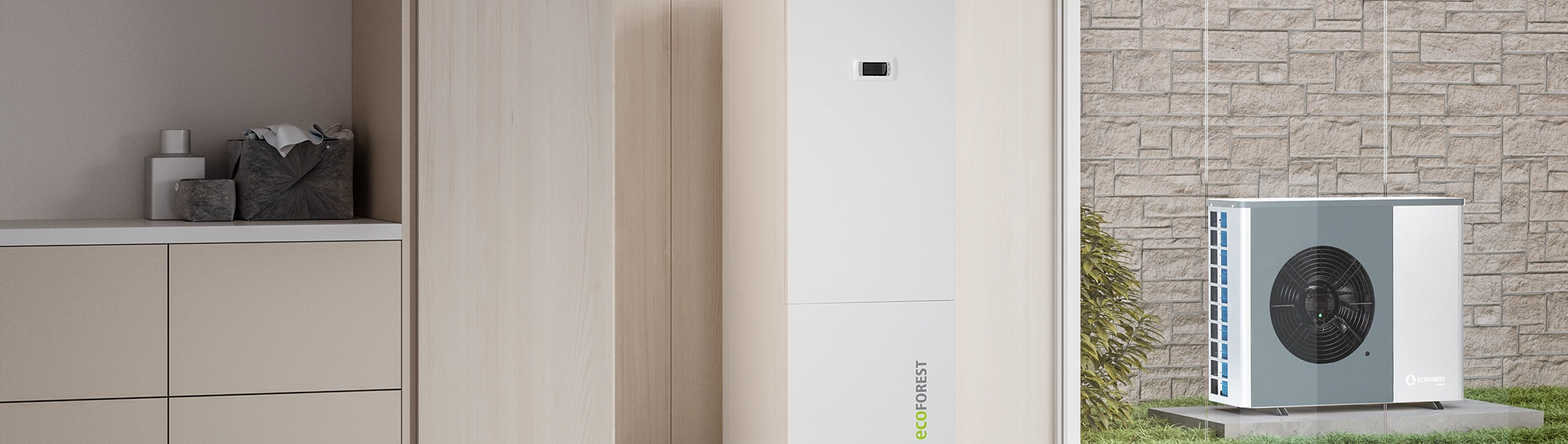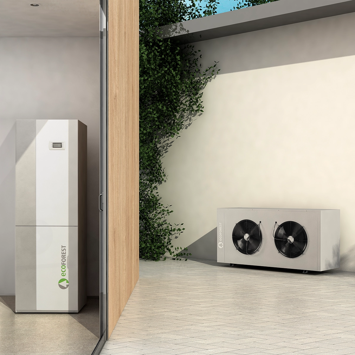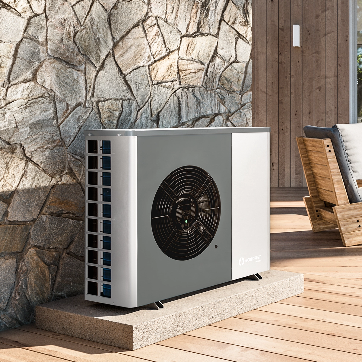 Ecoforest пропонує два типи повітряних теплових насосів у лінійці моноблочних теплових насосів: ecoAIR+ PRO і ecoAIR+ EVI. ecoAIR+ PRO — це повітряний тепловий насос із пропаном як холодоагентом та інверторною технологією, що забезпечує вищий ККД і температуру вище 70°C для виробництва гарячої води для побутових потреб (ГВП). Модель ecoAIR+ EVI поєднує інверторну технологію R410a зі SCROLL-компресором та ексклюзивною технологією EVI flash tank, забезпечуючи обігрів узимку, охолодження влітку та гаряче водопостачання цілий рік, адаптуючись до потреб установки навіть у складних умовах.